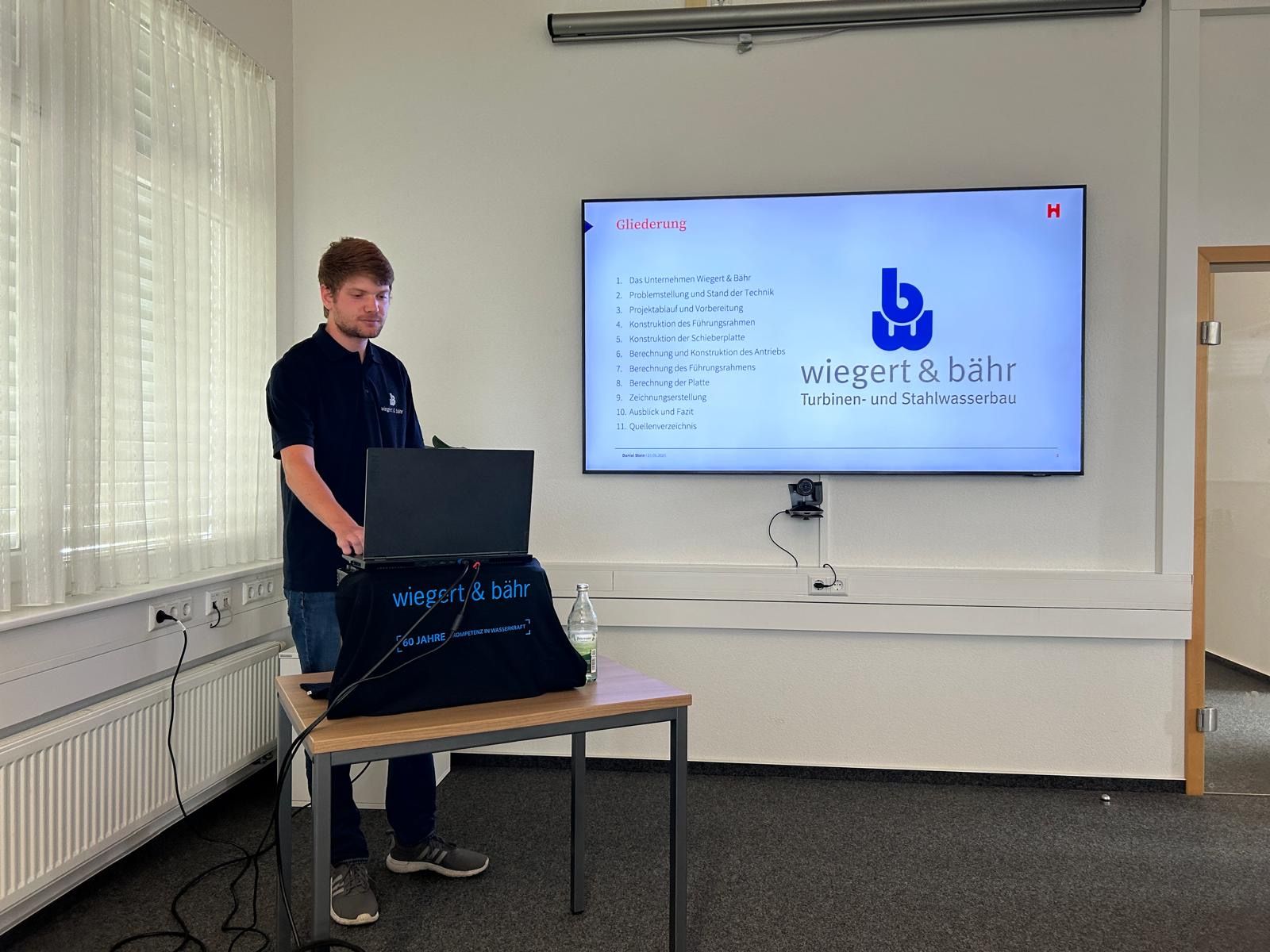Colleagues from Wiegert und Bähr Turbinen- und Stahlwasserbau, Daniel’s mentor Michael Wiegert, and Professor Dr. Jörg Ettrich from Offenburg University of Applied Sciences listened with great interest.
